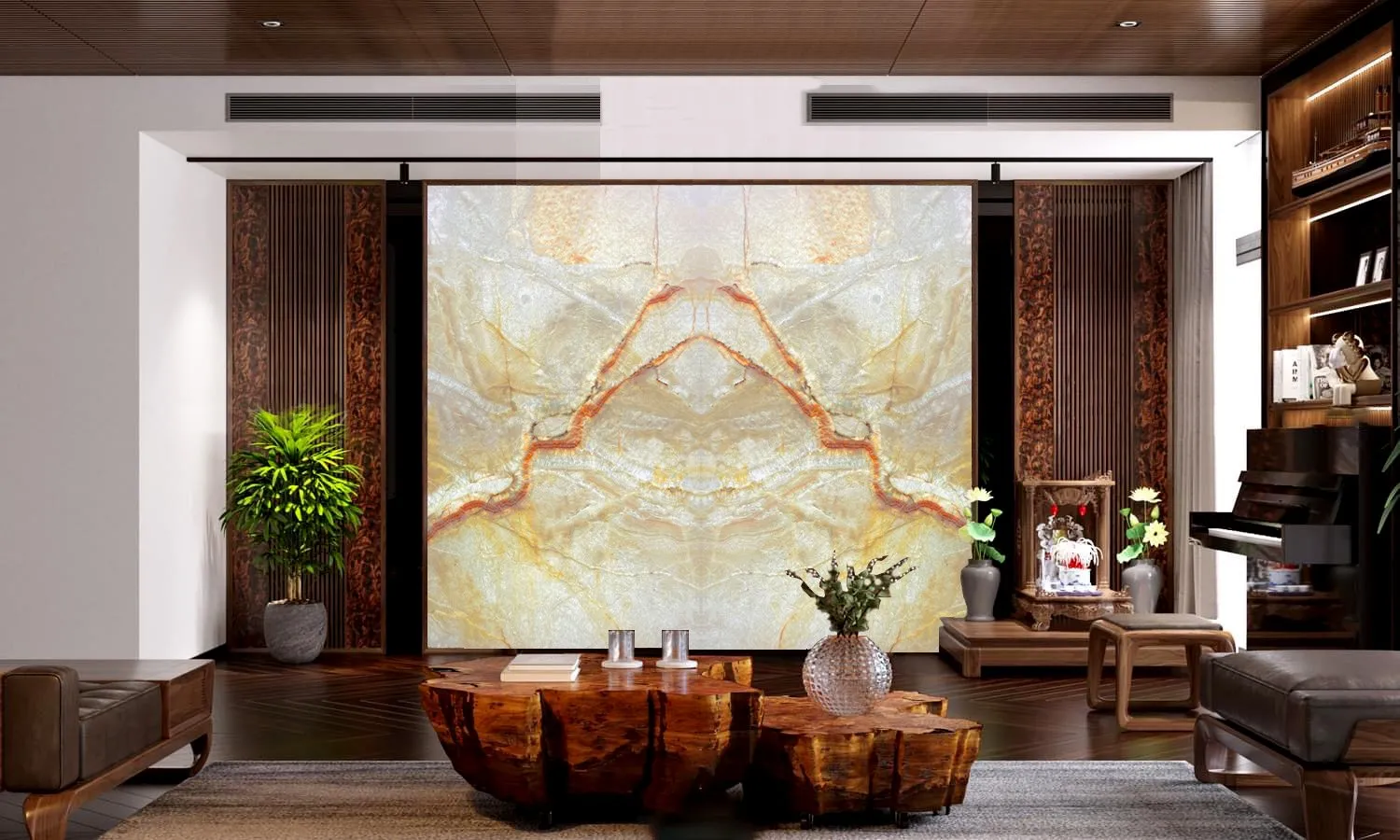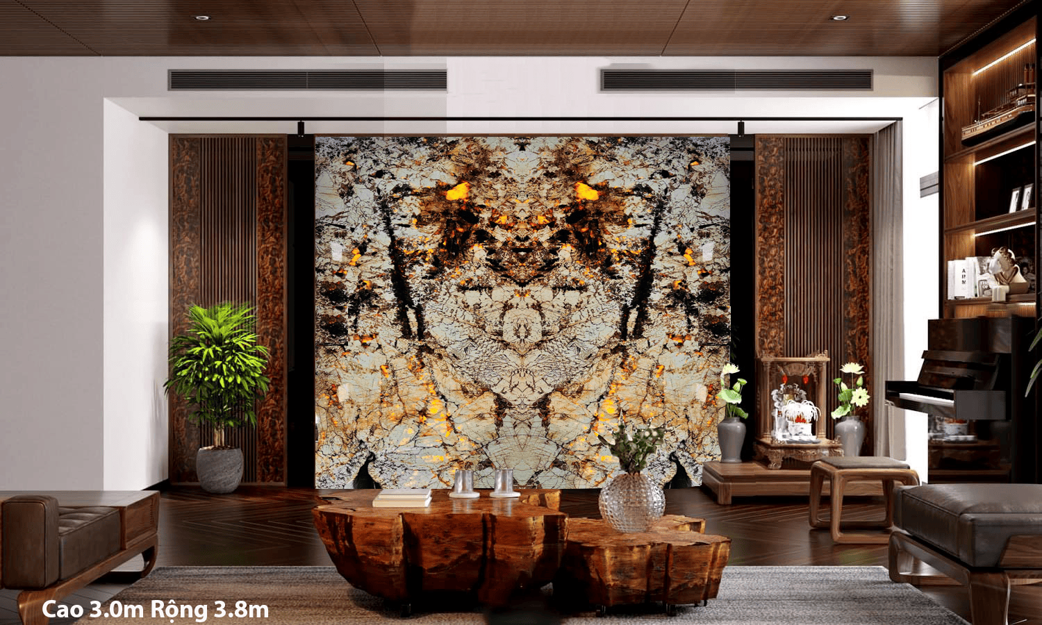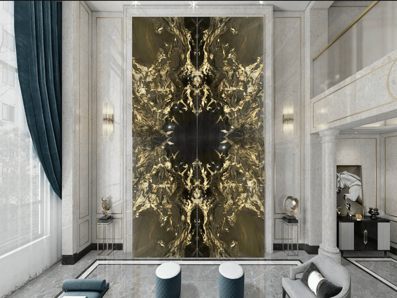Là một vẻ đẹp hiếm có, tạo ra hiệu ứng đặc biệt, hình ảnh đặc sắc, tranh đá tự nhiên đối xứng Bookmatch thường được đặt ở các khu vực có diện tích rộng lớn. Nếu là một nhà thiết kế có con mắt tinh xảo thì hẳn vị trí phòng khách, phòng bếp, mảng tưởng dọc hành lang… Những vị trí tường rộng, trống cần có điểm nhấn, cần khối hình học thông minh hay trừu tượng thì Bookmatch là lựa chọn hoàn hảo.