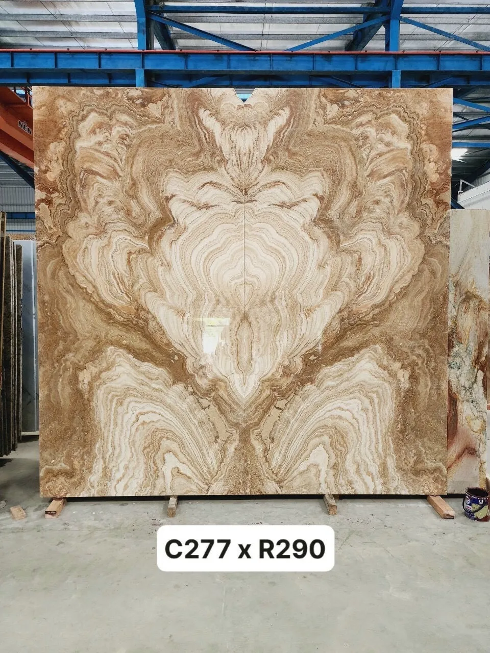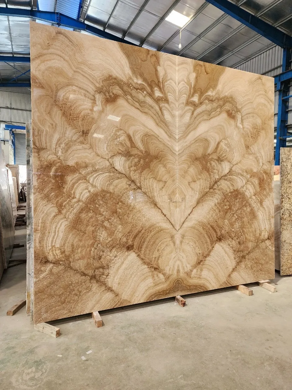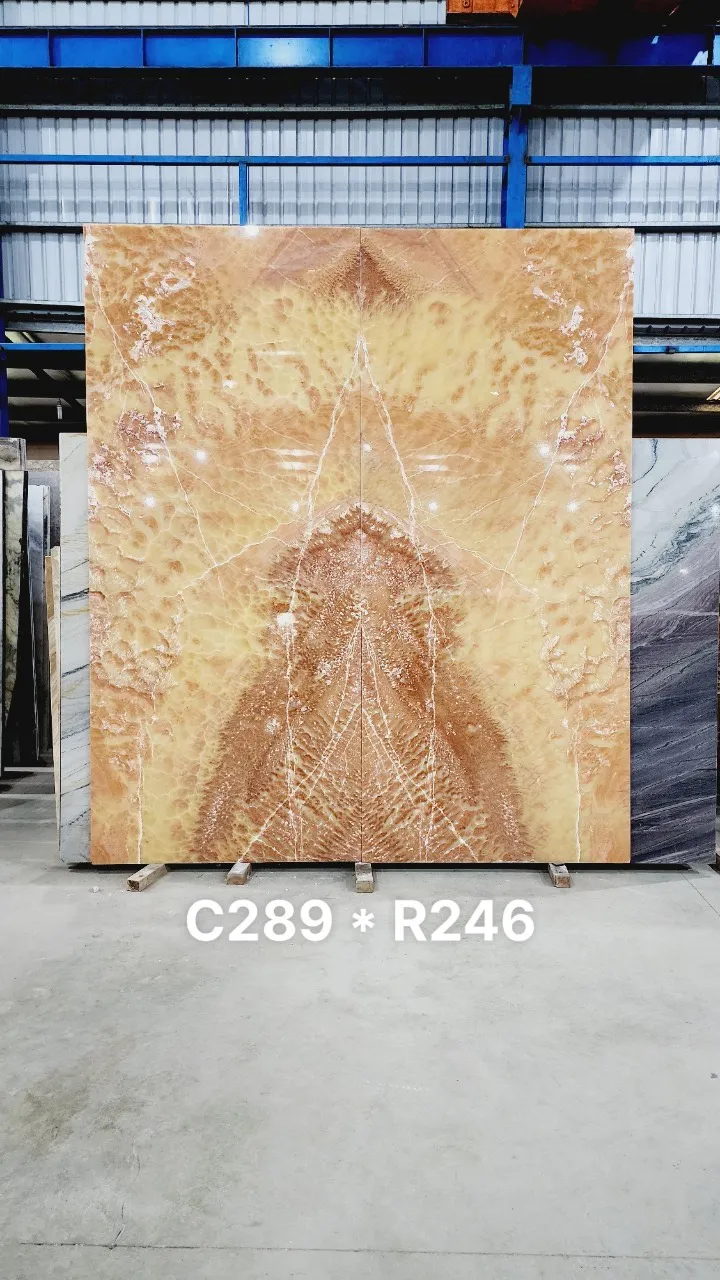 Từ khối đá khai thác tự nhiên được đưa đến xưởng cắt thành từng tấm slab với kích thước đều nhau. Tấm Bookmatch sẽ được đánh bóng mặt đối diện để khi tiến hành đặt cạnh nhau và mở ra như 1 cuốn sách, họ sẽ thu được hình ảnh phản chiếu của 1 tấm slab.